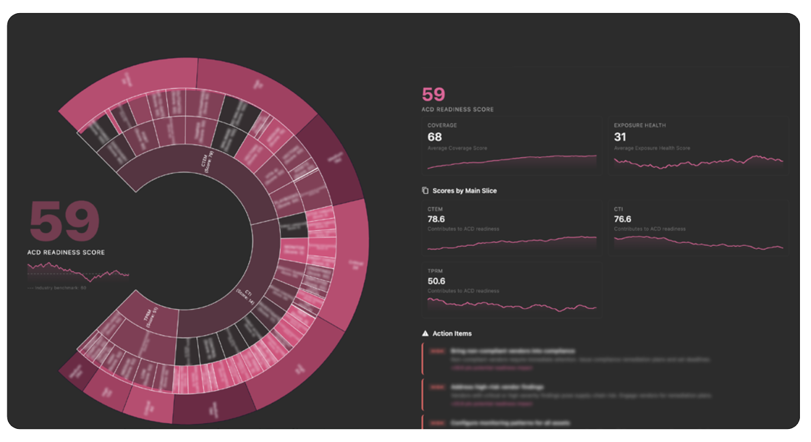 新開発の「アクティブサイバー経営管理ダッシュボード」は、KELAグループが持つ3つの戦略的支柱(CTI・CTEM・TPRM)を統合し、組織の防御状態をリアルタイムでスコアリングする経営管理ダッシュボードです。