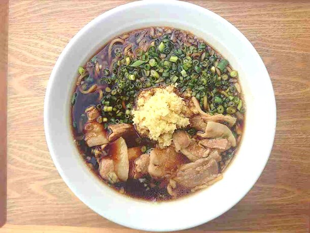 新生姜がキリッと香る、あっさり系漆黒醤油ラーメンです。