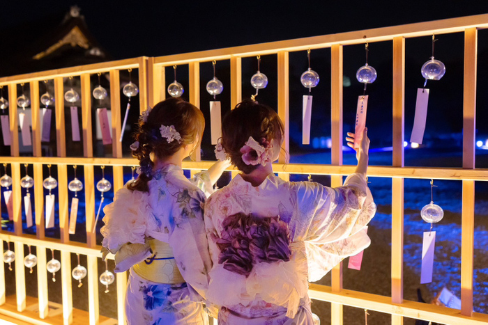 国宝・二の丸御殿の美しさを際立たせるライトアップとともに、涼やかな音色を奏でる七夕風鈴が京都の夏の風物詩『京の七夕』とのコラボレーションとして今年初登場。