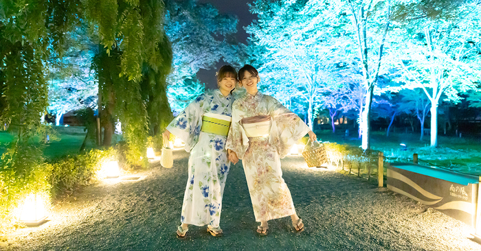 清流園に生い茂る青々とした緑を、夜風を感じながら楽しめる爽やかなライトアップです。