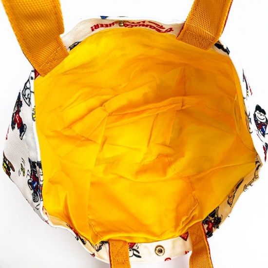 持ち手の赤がアクセントになっていて、かわいいですよね。スヌーピーやチャーリーブラウンたちの総柄になっているので、賑やかです♪