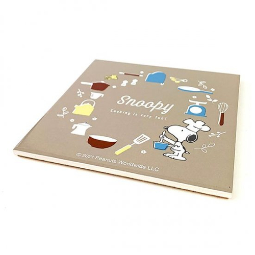 キッチンやダイニングに、オシャレなキッチンプレートはいかがでしょうか。スヌーピーのデザインで、鍋敷きとして使用できるほかインテリアにもなるアイテムです。キッチンになじむベージュや大理石風のタイルなので、使い勝手も抜群ですよ。