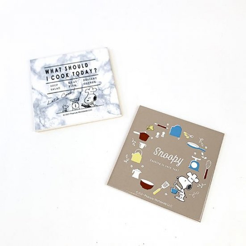 リアルな大理石調のデザインで、オシャレですよね♪クッキング中のスヌーピーとウッドストックのデザインもキュートです。