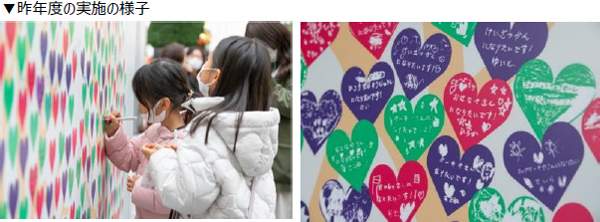 「ぼくのゆめ・わたしのゆめ」「(わたしたちの住むまち)梅田での思い出」をテーマに大阪市北区内の子供たちから、まちへの想いを記したハート型のメッセージを募集しました。