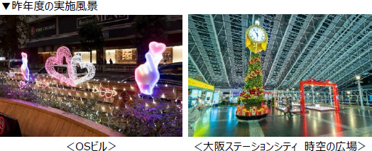 梅田地区の各施設(商業施設・ホテル等)にハートやイルミネーションが装飾され梅田エリアの一体感が感じられる、心温まるスポットが登場します。