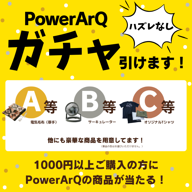 会場でPowerArQ製品を1000円以上購入された方限定!PowerArQの人気製品や限定グッズなどが当たるお楽しみガチャ。
