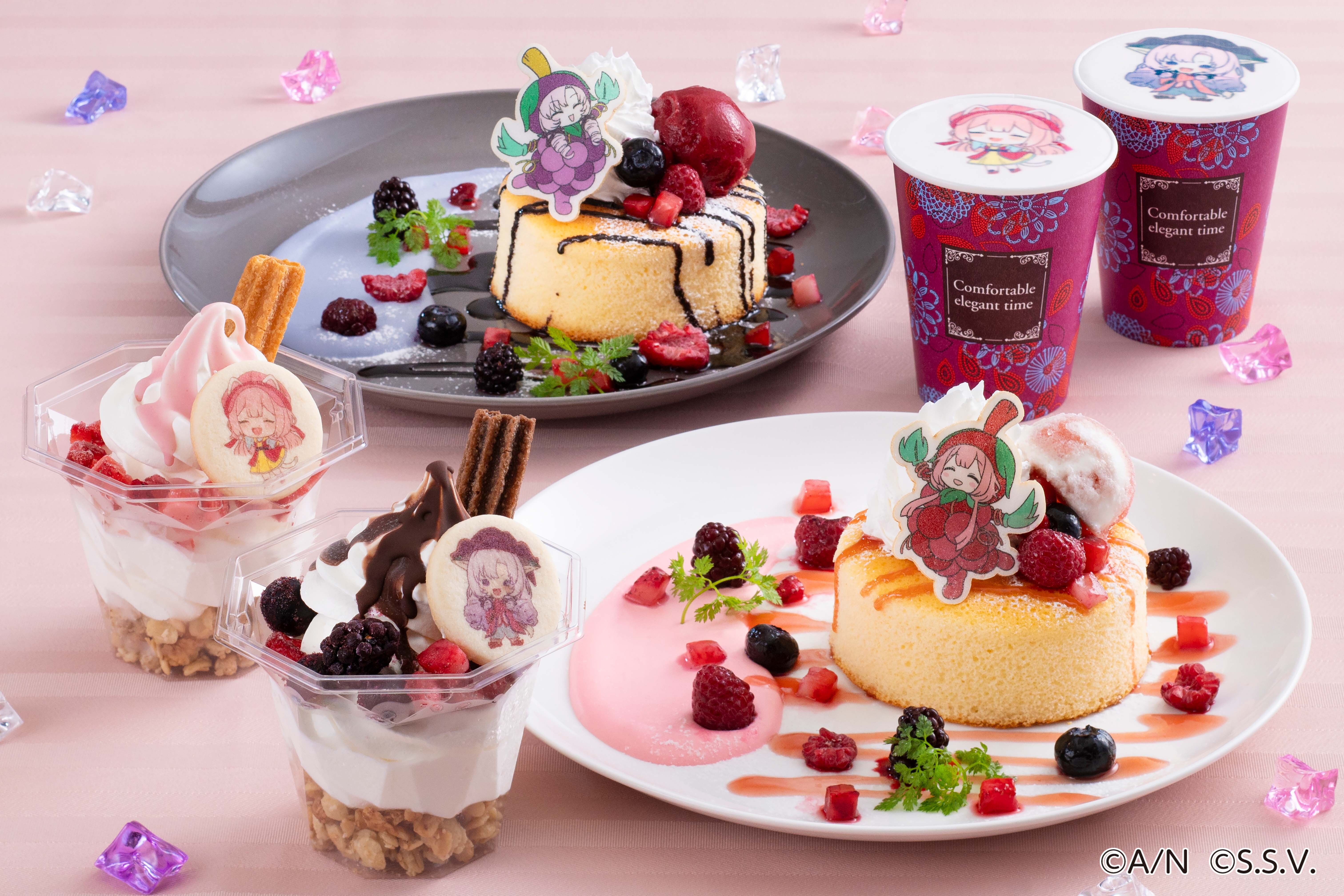 ンゴちゃん、サロメちゃんをイメージしたメニューが登場します。ベリーがいっぱいのパンケーキや、お2人が好きなチュロスが味わえるチュロサンデー、かわいいラテの全6種類をお楽しみいただけます。