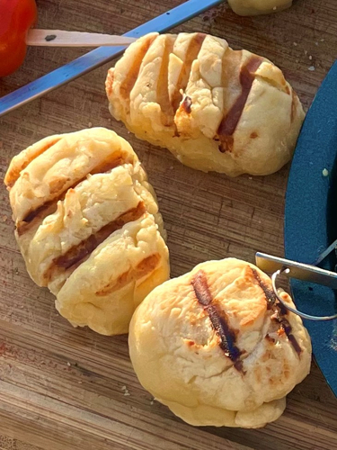 ・ジャガイモをハッセルバック(切れ目)状にカットしたものにガーリックオイルをシーズニング