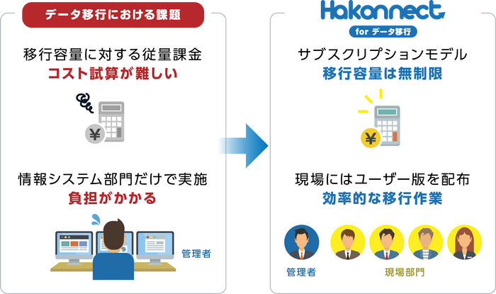 ~ユーザー・管理者それぞれに特化したツールで、 データ移行作業を低コスト・容易にし、情報システム部門の負荷を削減~