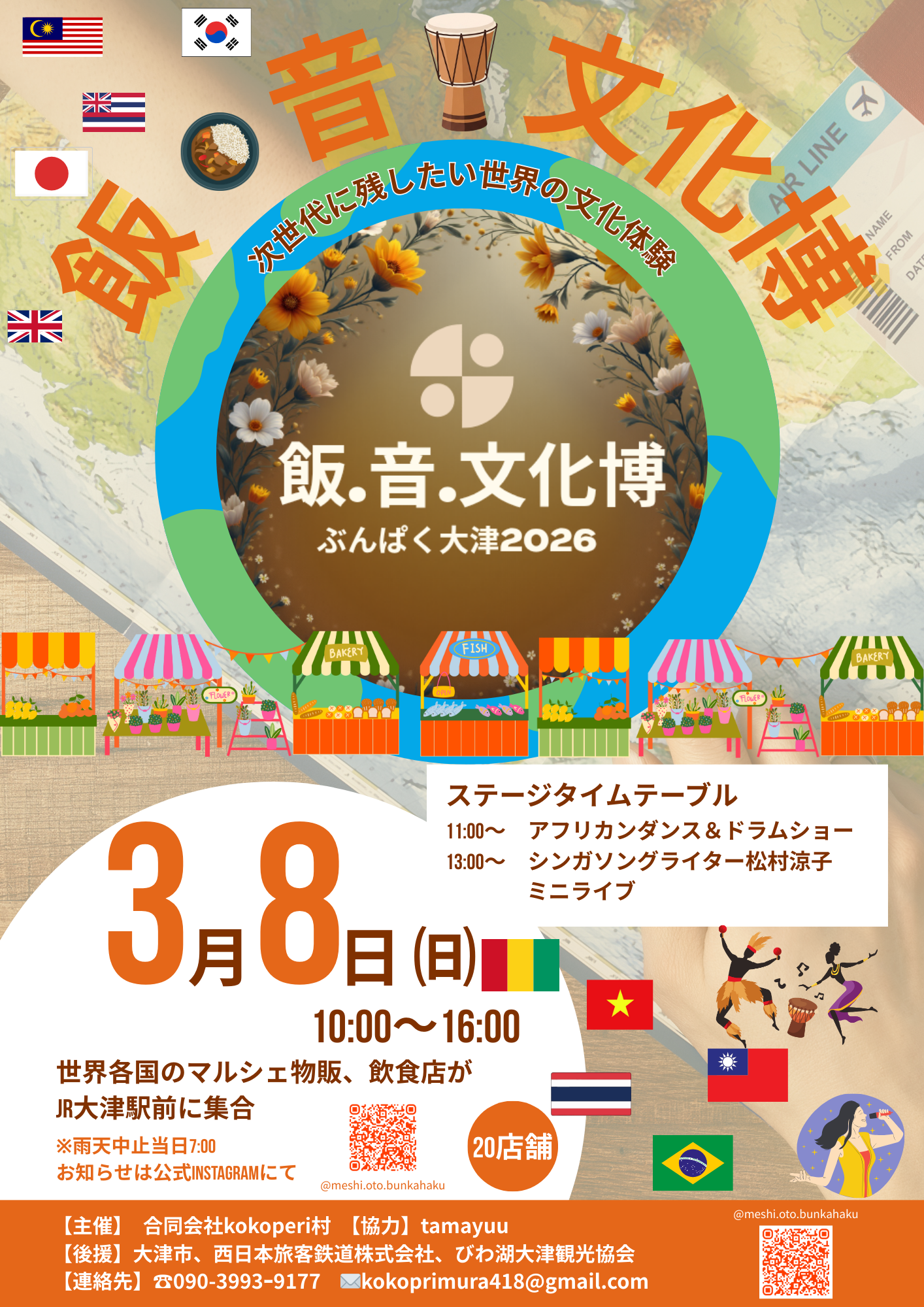合同会社kokoperi村(滋賀県大津市、代表:村田邦子)は、2026年3月8日(日)、JR大津駅前広場にて、世界各国の食・音楽・工芸を通じて多文化共生への理解を深めるイベント「飯・音・文化博(ぶんぱく大津2026)」を初開催します 。