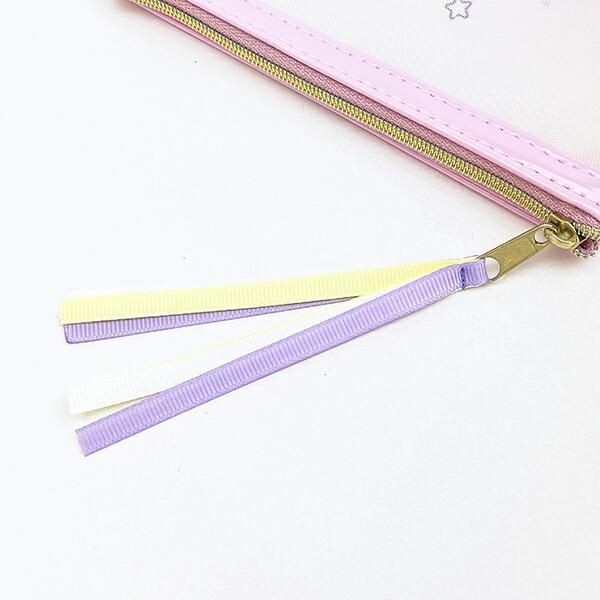 淡いパステルカラーの色合いに、星がいっぱいデザインにうっとり、ポーチを開かなくても中身がみえ、便利でこの透け感を利用して見せる収納を楽しむこともできます。サイズ:14cm×14cm×0.5cm 素材:ポリエステル