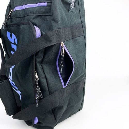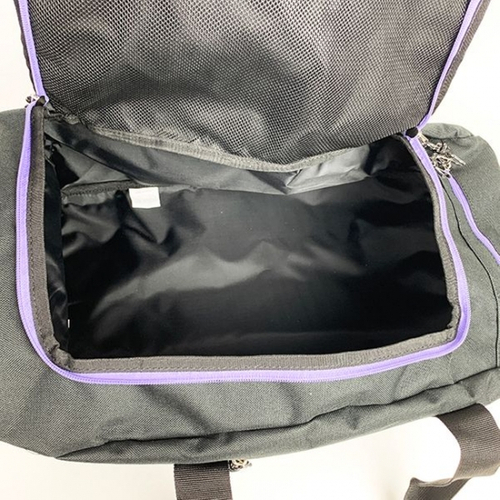 ブラックカラーにパープルのロゴがカッコいいですよね~。ファスナーポケット部分も同じカラーになっていて、アクセントにもなっています。