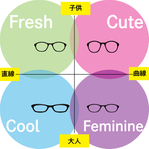 顔タイプアドバイザーが顔の輪郭や目・鼻などのパーツの特徴を分析したうえで4つの顔タイプに分類し、お客様の顔タイプに合ったメガネをおすすめいたします。