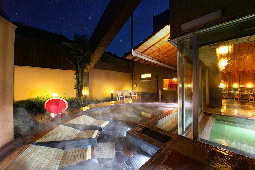 ホテル自慢の温泉は、体への負担が少ないアルカリ性単純温泉。やわらかなお湯が、心身ともにリラックスさせてくれます。選ぶ楽しさ満載のバイキングと自慢の温泉を、心ゆくまでお楽しみください。