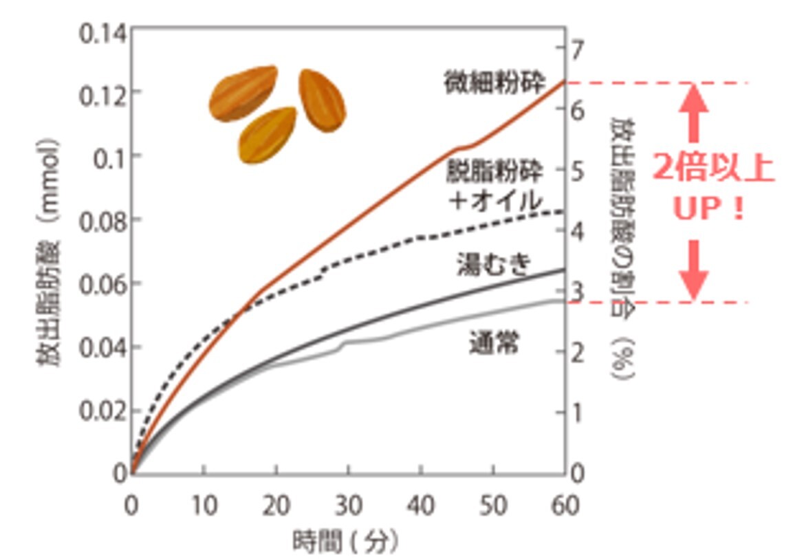 アーモンドに含まれる豊富な栄養素を効率よく摂取するには、細かく砕いてアーモンドミルクとして摂取するのがおすすめです。これは硬い細胞壁を砕いて壊すことで、栄養素を十分に吸収できるためです。実際、細かく砕いたアーモンドは、そのままのアーモンドより2倍以上消化が良いことが示されています。
