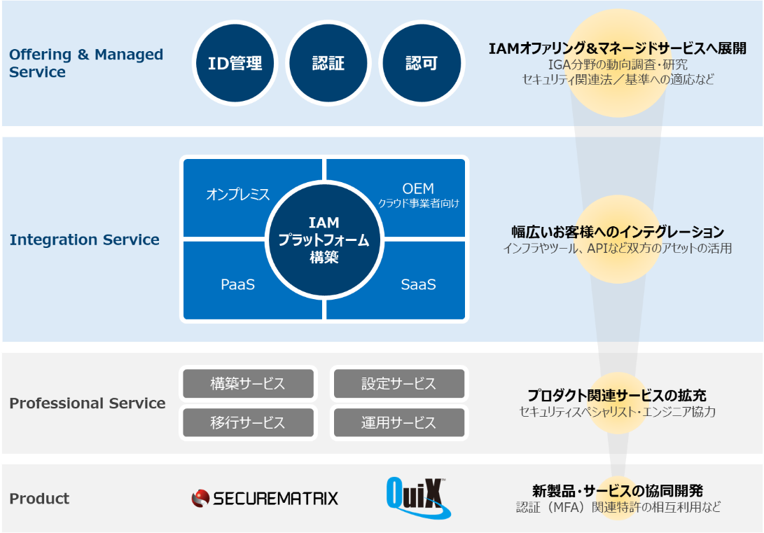 この協業により、新しい製品・サービスの開発から枠を広げてインテグレーションやマネージドサービスを協創し、お客様が利用するクラウドサービスやネットワークに合わせて、最適なIAM(ID管理・認証・認可)をトータルでオファーし、「安心・安全」を提供するスマートIAMオファリングを目指しチャレンジしてまいります。