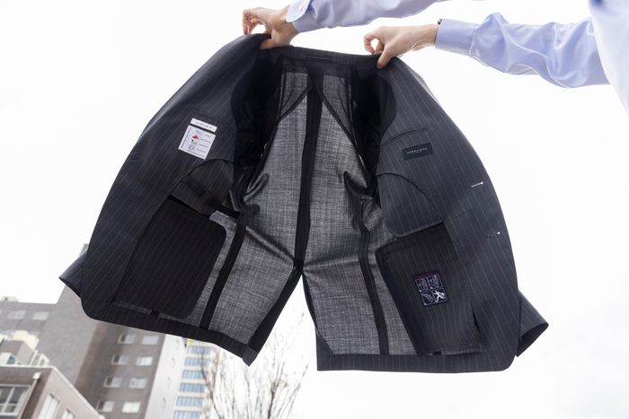 今回発売する商品は、ウールとポリエステルを混紡し3つのサステナブルを取り入れたこれまでにないスーツです。ウールには、動物愛護の観点から羊の苦痛やストレスを抑えた「ノンミュールジングウール」を使用しました。ポリエステルには、再生プラスチックを原料とした「COOLMAX(クールマックス)®EcoMade(エコメイド)」や不要になった衣類または生産時に出てしまう残反などを原料とするリサイクル糸「RENU(レニュー)®」などを採用し、動物福祉と環境に配慮しました。「COOLMAX®EcoMade」は、吸水速乾性に優れ、汗や湿気などによるべたつきを軽減する機能を備えてます。加えて、スポーツウェアにも使われるストレッチ糸を使用した素材により、通常のスーツと比べ1.5倍のストレッチ性で快適な着心地です。さらに、自宅の洗濯機で丸洗いでき、お手入れも簡単です。