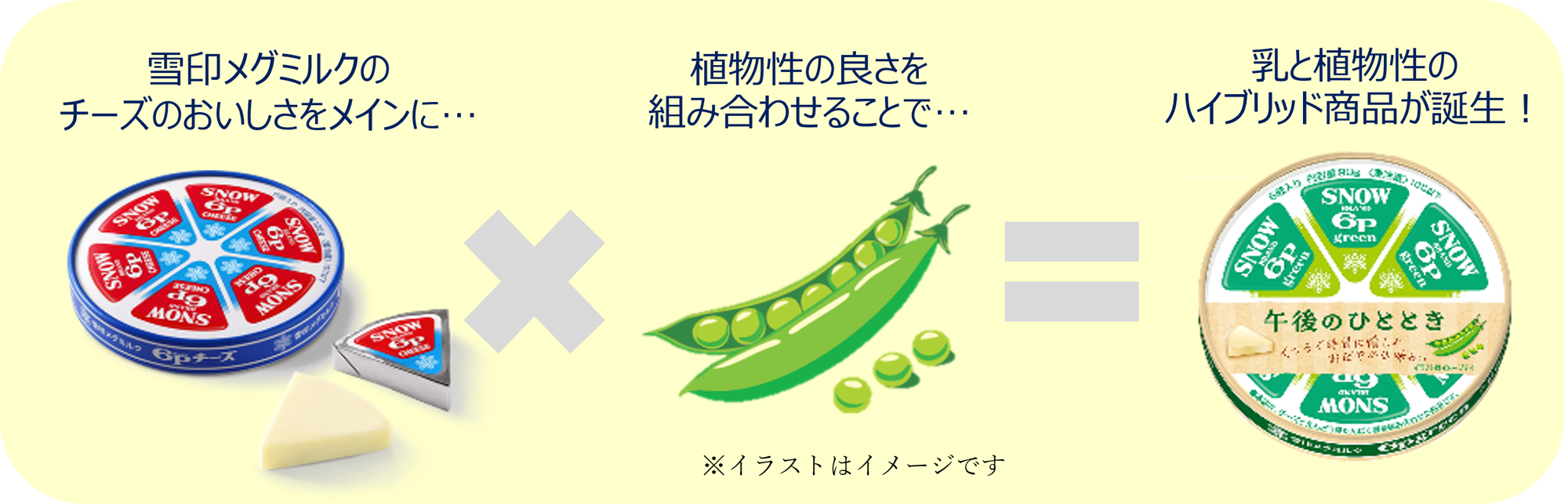 当社は、この「6P」シリーズから、新しい価値を提案する「6Pgreen 午後のひととき」を発売します。当商品は、チーズとえんどう豆たんぱく質を組み合わせた、おだやかな味わいの“乳と植物性のハイブリッド商品”です。