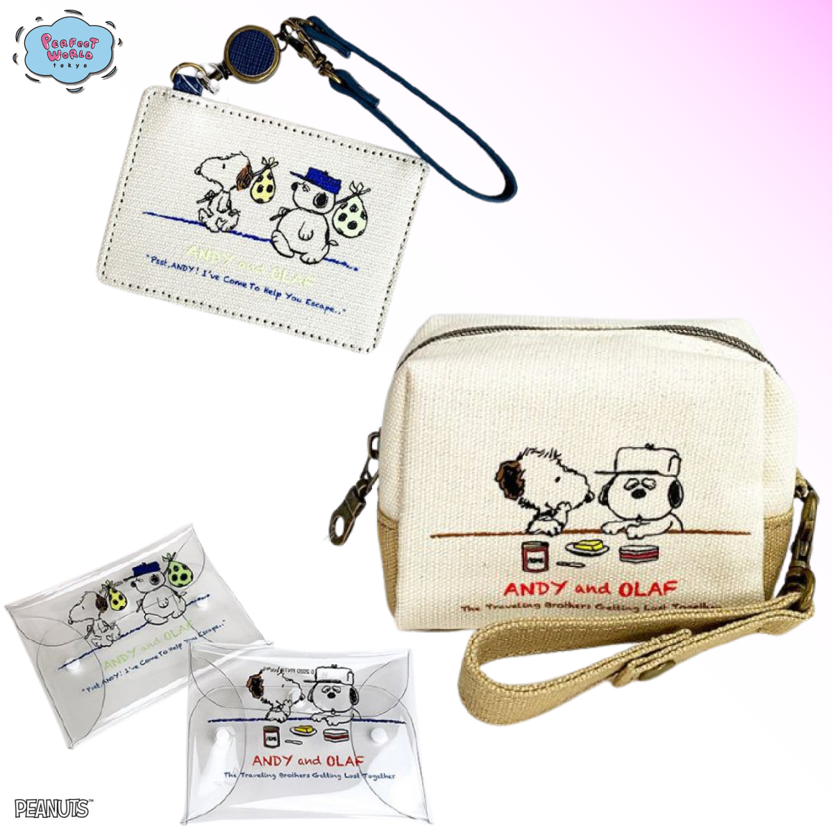 アンディ&オラフの新デザインから、ポーチとパスケースをご覧いただきました。