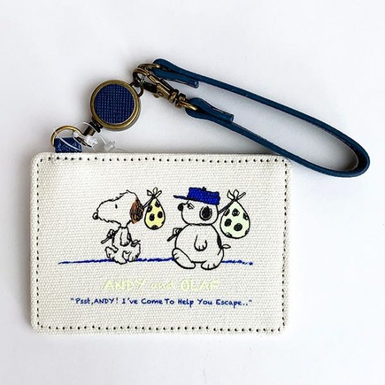 こちらは、シングルパスケースです。アンディとオラフが2人で旅をしています♪キャンバス地に、ネイビーのリール付きストラップの配色もシンプルベーシック。
