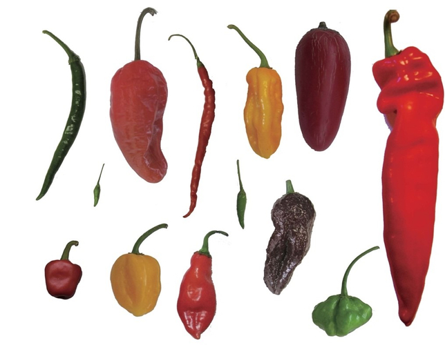 トウガラシには、辛味成分のカプサイシノイドを果実に蓄積する香辛料用の品種と、遺伝子の変異により辛味成分を生合成できない非辛味の野菜用品種(ピーマン、パプリカなど)があります。また、トウガラシ属には5つの種類がありますが、日本を含めて世界で最も広く栽培・利用されているのは、タカノツメなどのannuum種です。一方で、ハバネロ、スコッチボネット、ブート・ジョロキアなどのchinense種は、annuum種と比較して果実が非常に辛いこと、果実がフルーティーでエキゾチックな香りを有することが特徴です。chinense種はカリブ海の島々、南米、アフリカなどで愛されており、食の多様化に伴い日本や欧米でも市場を拡大しています。