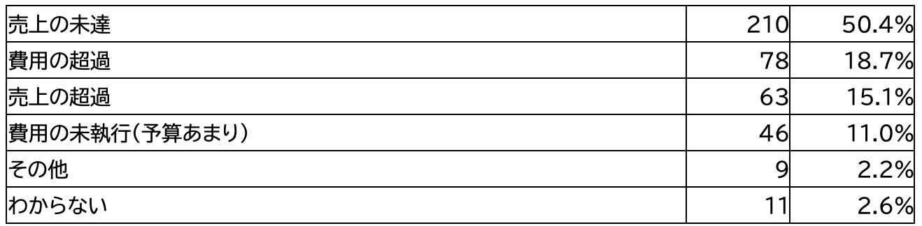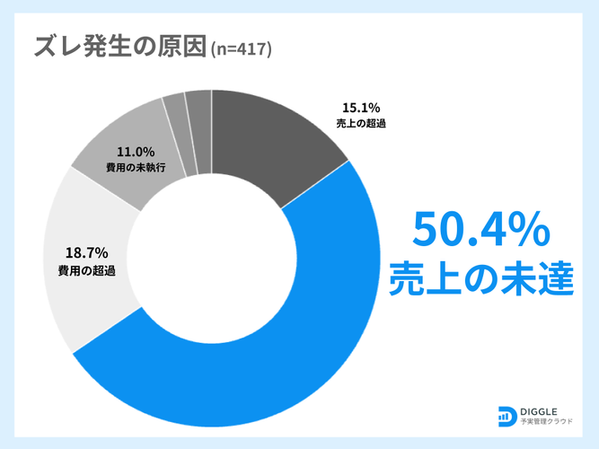 ・ズレの主な理由のうち50.4%が「売上の未達」、次いで18.7%が「費用の超過」