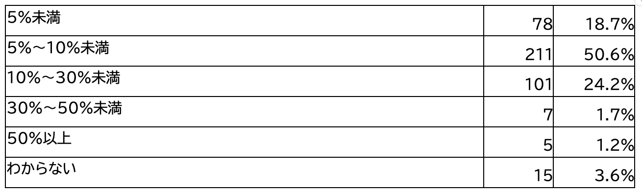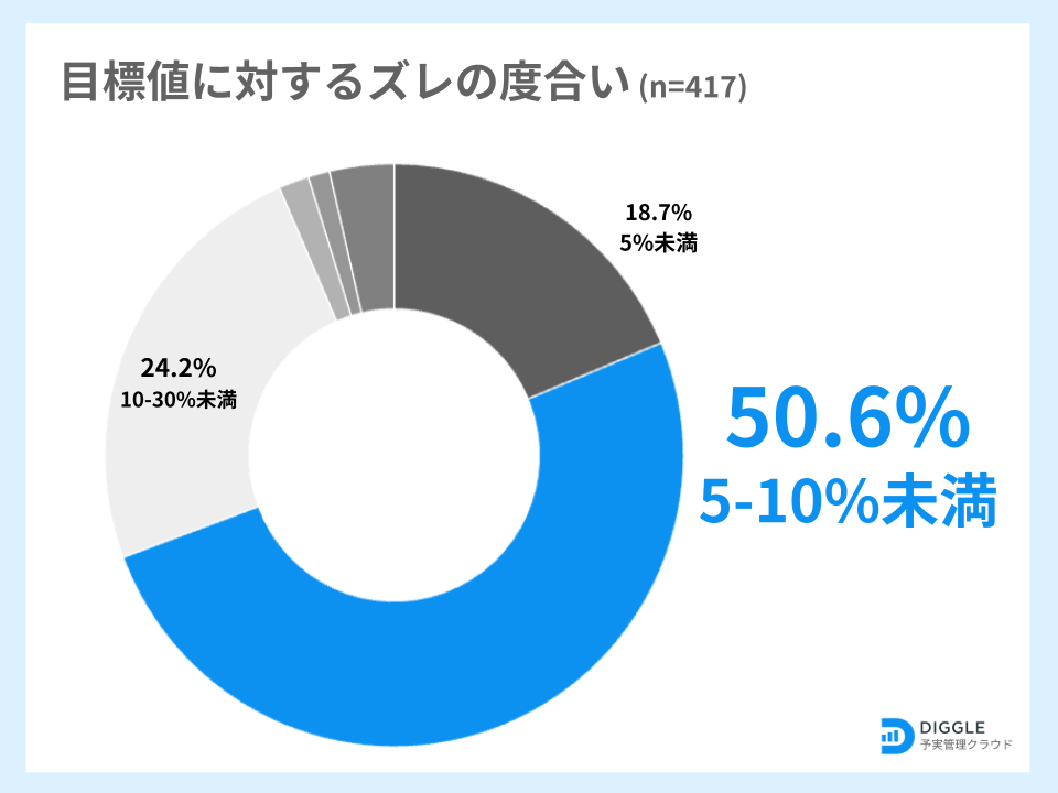 ・営業利益目標・予測に対するズレの度合いは「目標値に対して5-10%未満」が最も多く50.6%