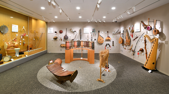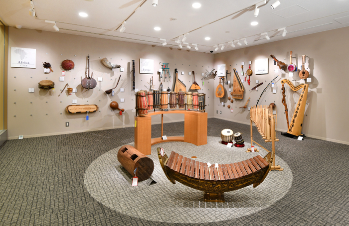 ロバの顎(下顎部分のみ)を用いた楽器「キハーダ」などの、世界の民族楽器の一部を展示しています。