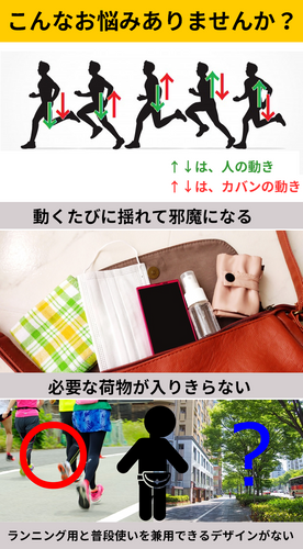 ランニングする時はできる限り身軽で出かけたいもの…。でも、持ち物を最低限「鍵とスマホ」だけにしても、ポケットの中でユサユサと揺れてストレスに!そして本音を言えば、財布、スマホ、ドリンクくらいは揺れを気にせず持って走りたい!そんなランナーの願いを「サイドベルトを締める」ことで可能にしたのが、ツナグバッグランナーです。