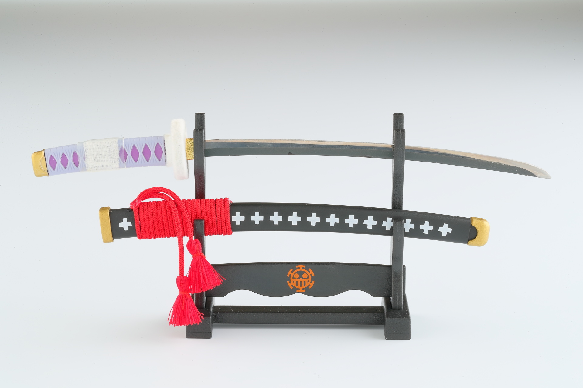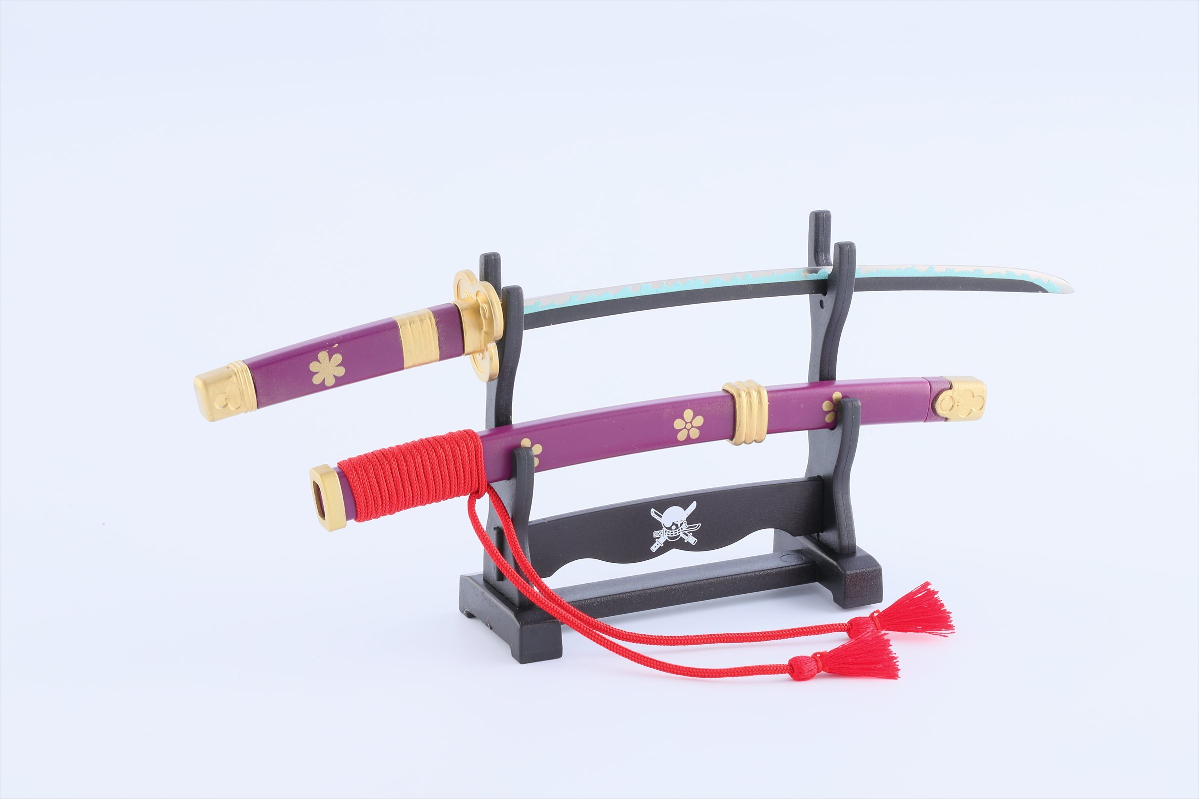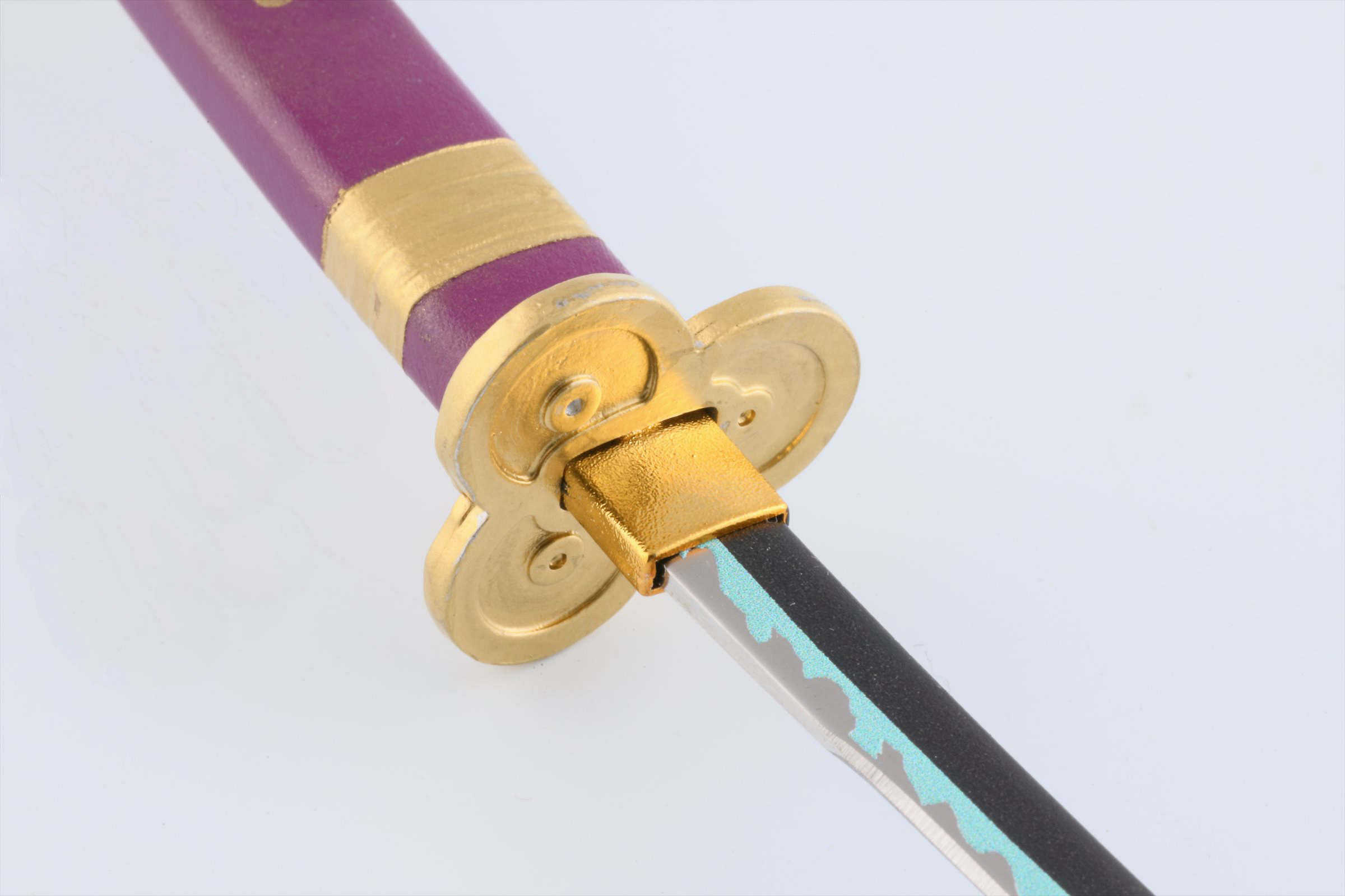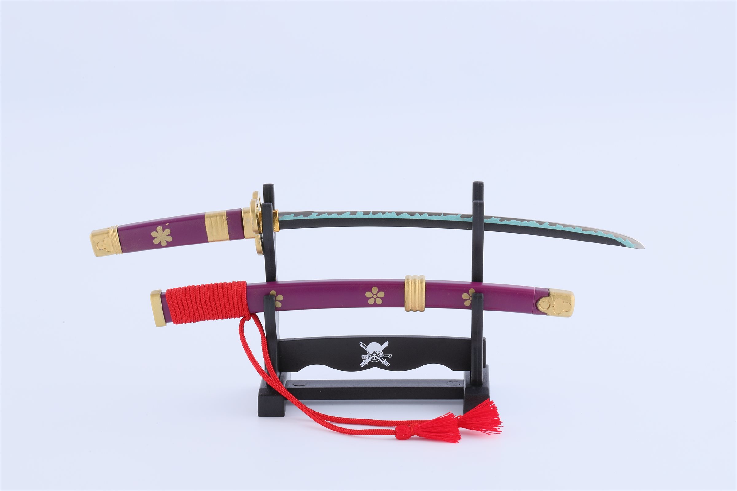 ワンピースペーパーナイフは、新商品となるゾロの愛刀「閻魔」の他、既に販売中の「和道一文字」「三代鬼徹」(秋水は廃番)と、ローの愛刀「鬼哭」をモデルに作り込んでおり、それぞれ刃紋や鍔の形状、鞘の形状までリアルに再現しております。