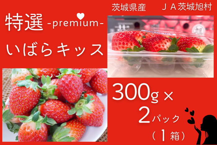〇茨城県産 特選いばらキッス(約300g×2パック) 3L JA茨城旭村【いちごを優しく包む「ゆりかーご」使用】