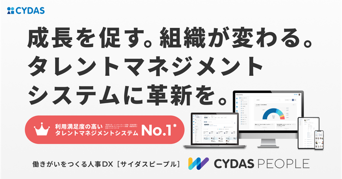 2011年10月創業のITベンチャー。「明日が楽しみになる世界をつくる。」をミッションに掲げ、すべての働く人の才能を引き出し、誰もが活躍できる組織や会社、さらには社会をつくることを目指しています。日本のタレントマネジメント業界のパイオニア的存在として、10年以上製品開発を実施。長年の知見が詰まったCYDAS PEOPLE(サイダスピープル)は、人事・経営層のみならず、社員全員が使いやすいシステムとして、多くの企業に採用いただいております。
