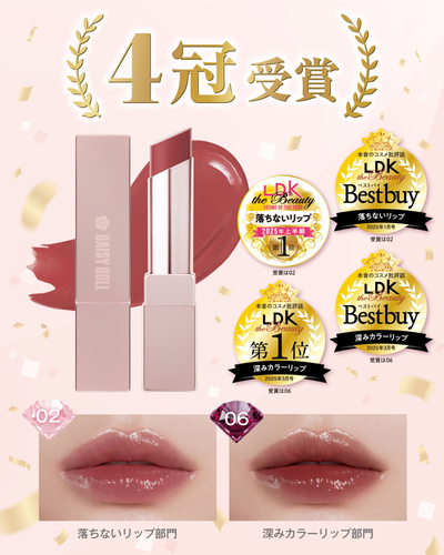 さらに「06 勝利を導くガーネット」も「深みカラーリップ部門」で1位に輝き、2色同時受賞するとともにこれまでにもベストバイなどを複数受賞するなど、大変ご好評いただいている話題のリップです。