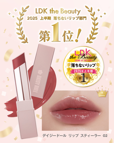 株式会社クラブコスメチックス(本社・大阪市 代表取締役社長:中山ユカリ)はDAISY DOLL by MARY QUANTから展開する『デイジードール リップスティーラー 02 恋の引き寄せローズクォーツ』が、コスメを本音で評価する人気美容誌「LDK the Beauty」(株式会社晋遊舎)2025年8月号において「落ちないリップ部門」で上半期第1位を受賞いたしました。なめらかな質感でぷるんとしたツヤ感とシアーな発色が持続するリップとして高く評価されています。