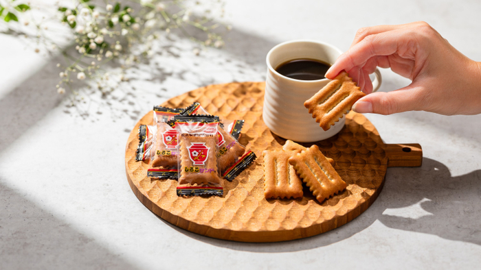 しるこサンドは、愛知県で半世紀以上にわたり愛され続けるパリリン食感のビスケットにあんこをサンドし焼き上げたビスケットで、愛知県のみならず日本全国にファンを多く持つお菓子です。