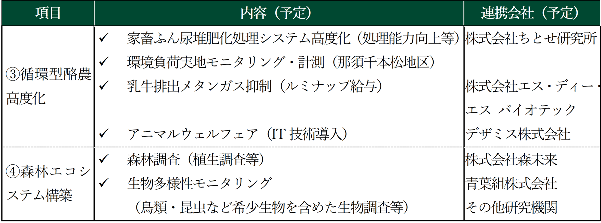 (2)循環型酪農高度化ならびに森林エコシステム構築の具体的な内容(予定、今後変更の可能性あり)