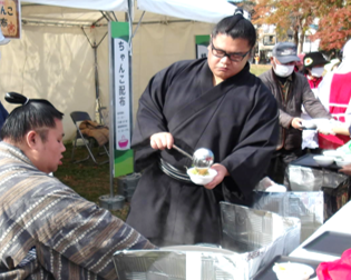 ②ちゃんこ無料配布