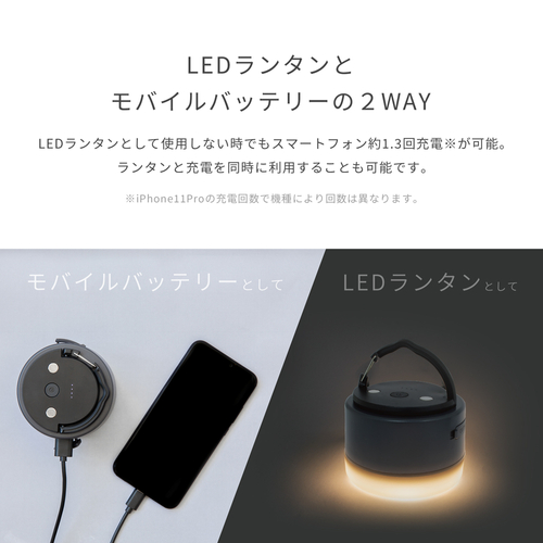 ▼最大点灯30時間のLEDランタン+モバイルバッテリー6,700mAh