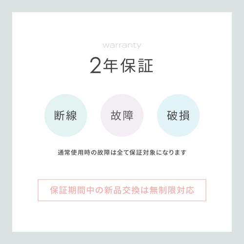 ・通常使用時の故障は全て保証対象になります。保証期間中の新品交換は無制限対応です。