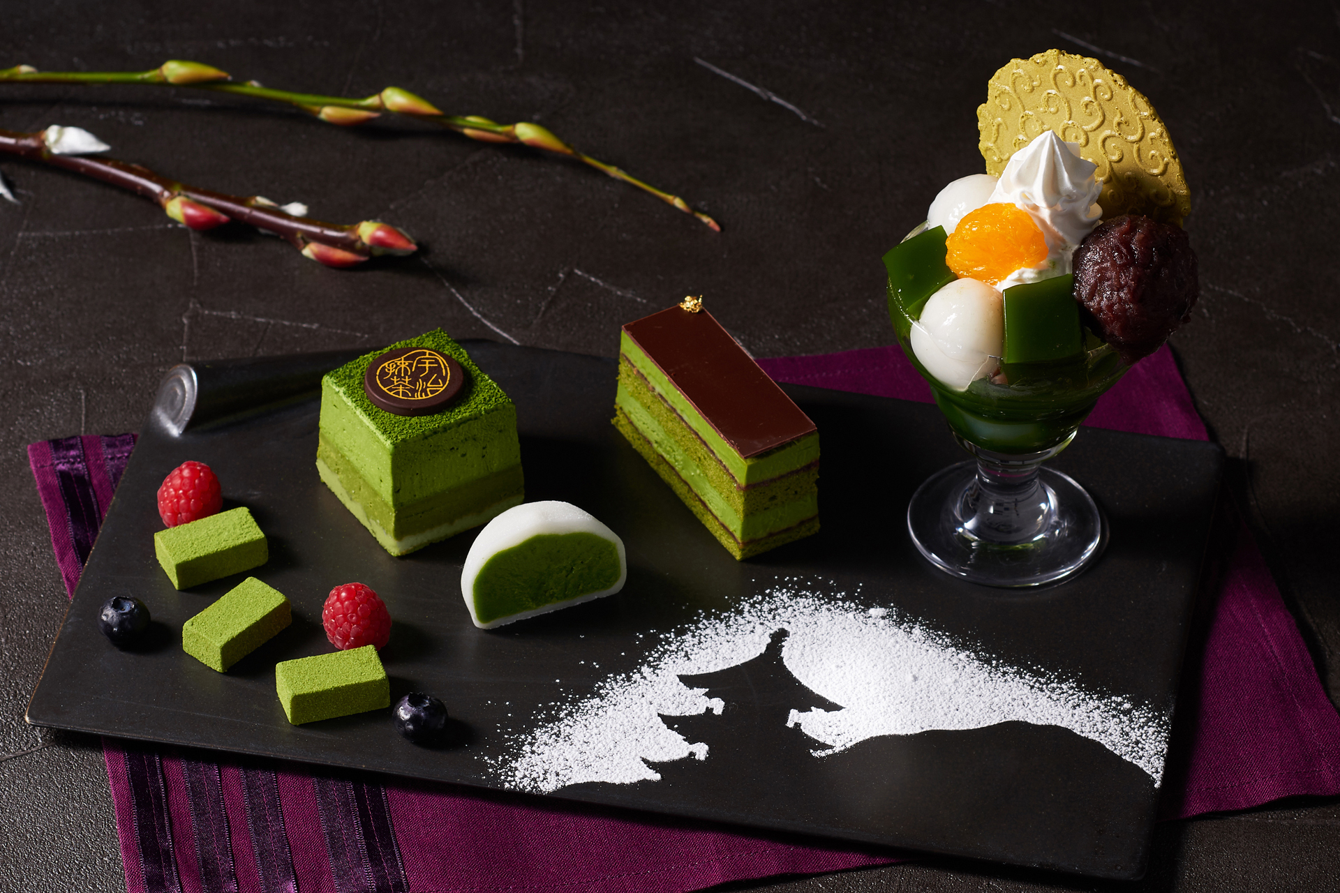 この冬、特別なデザートプレートが祇園四条店限定で登場いたします。「宇治抹茶を堪能する」ための5品を、深緑が際立つ黒色のプレートに盛り合わせました。プレートを彩るのは、当店グランシェフのスペシャリテ『宇治抹茶デリスフロマージュ』『宇治抹茶クラシックガトーショコラ』をはじめ、販売開始から20年を迎える、長く愛されてきた定番のロングセラー『宇治抹茶だいふく』『宇治抹茶生チョコレート』、京都でしかお召し上がりいただけない茶房で人気のパフェをミニサイズにした『宇治抹茶ミニパフェ』の5品。祇園四条店だけしか味わえない特別メニューを、1日の数量限定で提供いたします。