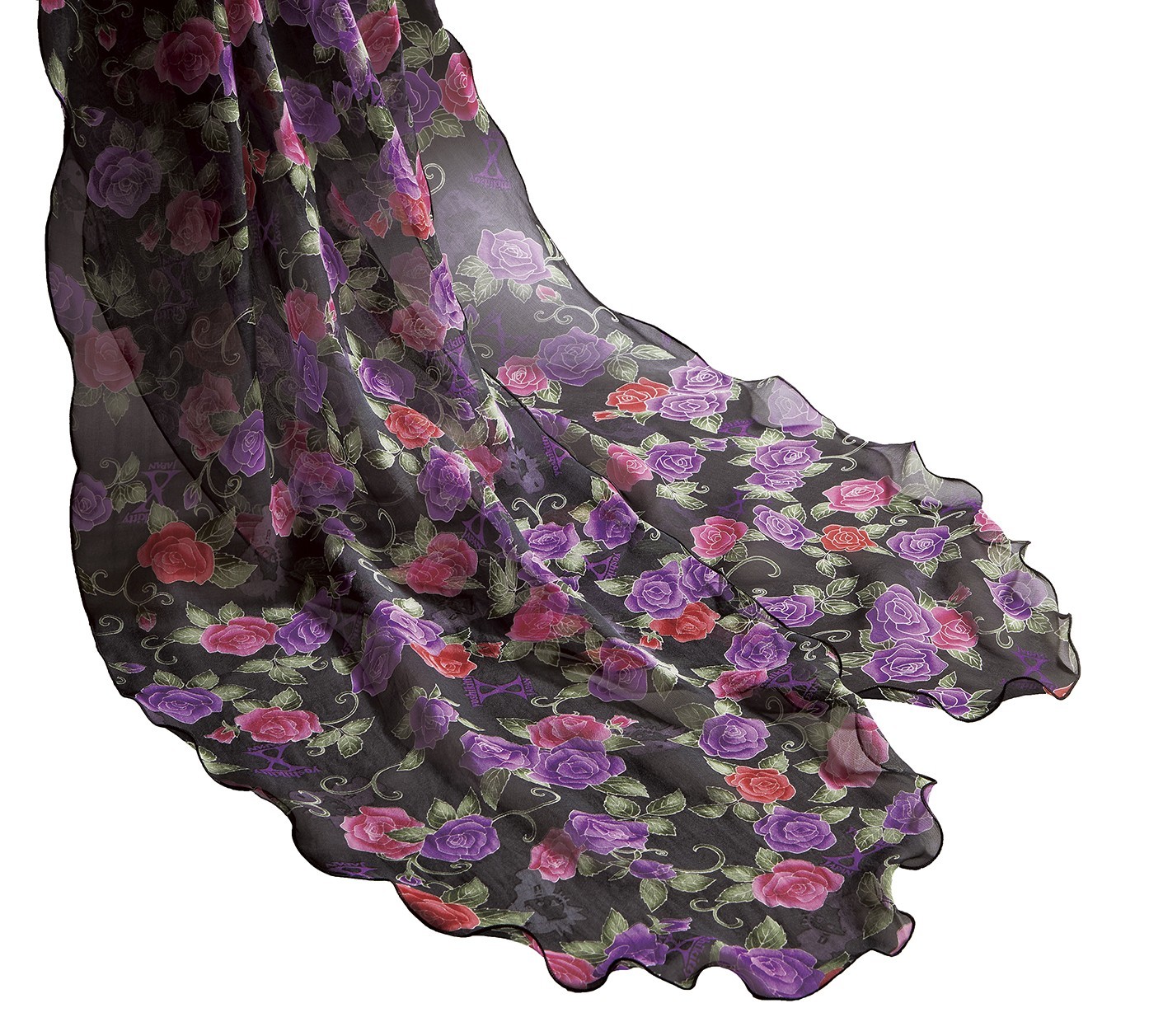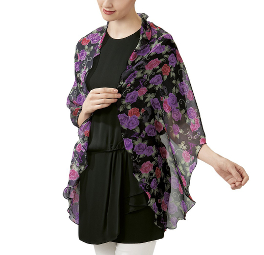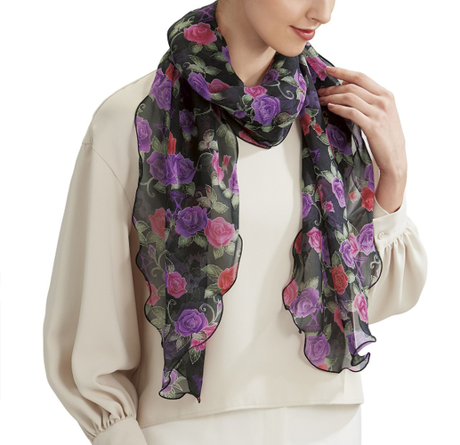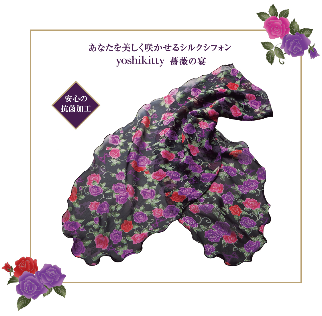商品名:「yoshikitty 薔薇の宴 友禅模様の手捺染シルクフォン・ストール」