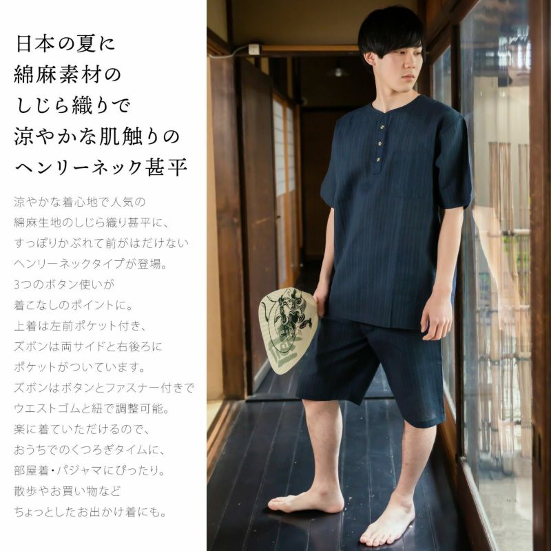3.洋服感覚で気軽に着られるヘンリーネック甚平