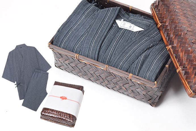 和装ライフの入門として作務衣をプレゼントするのもおすすめ。甚平との違いは袖丈とズボン丈。作務衣は長袖・長ズボンで、オールシーズン使えるのが魅力。作業着としてだけでなくくつろぎ着としても使え、リピート購入する人多数。男女兼用サイズなので、両親に送るのも◎。