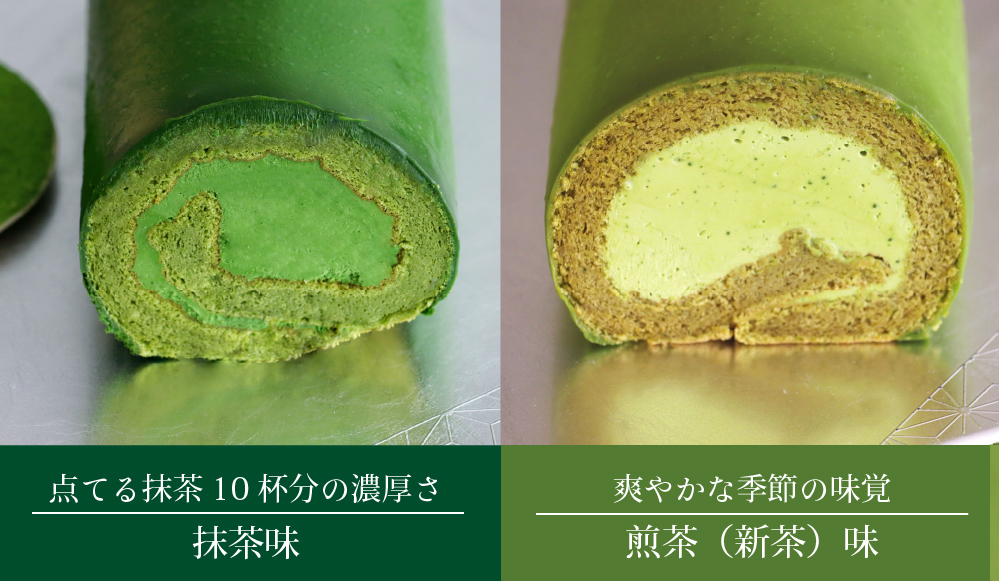 「点てる抹茶10杯分の抹茶生チョコロールケーキ」は2022年4月に販売を開始した、大人気の抹茶ロールケーキです。今回はこの茶農家ロールケーキシリーズに、新たに煎茶(新茶)味が加わりました。