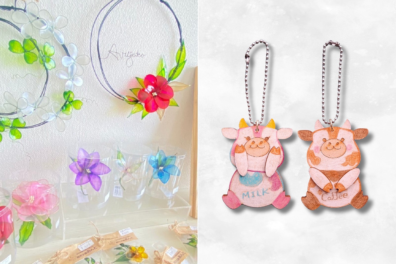 令和5年2月に、宇都宮市に開所された障がい者就労継続支援B型事業所「就労支援あんと」。障がいのある方がワイヤー形成から色付け、パーツの取り付けの工程をメンバーで分担・協働して作り上げた、透明感あるディップアート雑貨を販売。まるでガラスのような質感ながら軽くて丈夫、家庭の壁などにも飾れるアイテムが並びます。