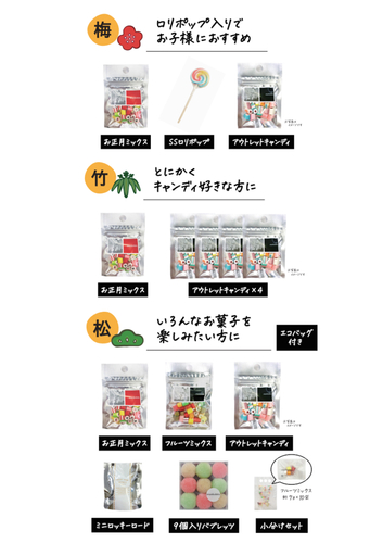 お子様でも買えるよう1,000円で様々なキャンディが楽しめる「梅」