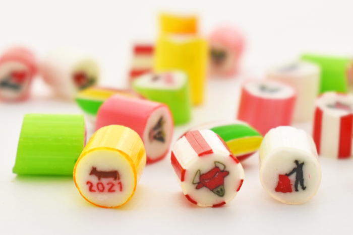 今年のお正月ミックスは「丑年」にちなみ、様々な牛がデザインされたキャンディ。職人の遊び心から生まれたマタドール柄まで入っています。