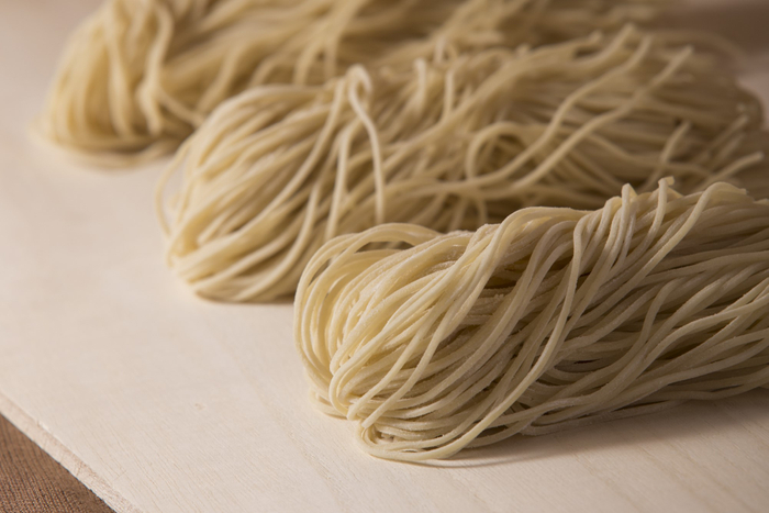 オーストラリア産の最高級小麦”プライムハード”を中心に独自のブレンドで作り上げ、食感や味を重視した低加水の自家製麺です。