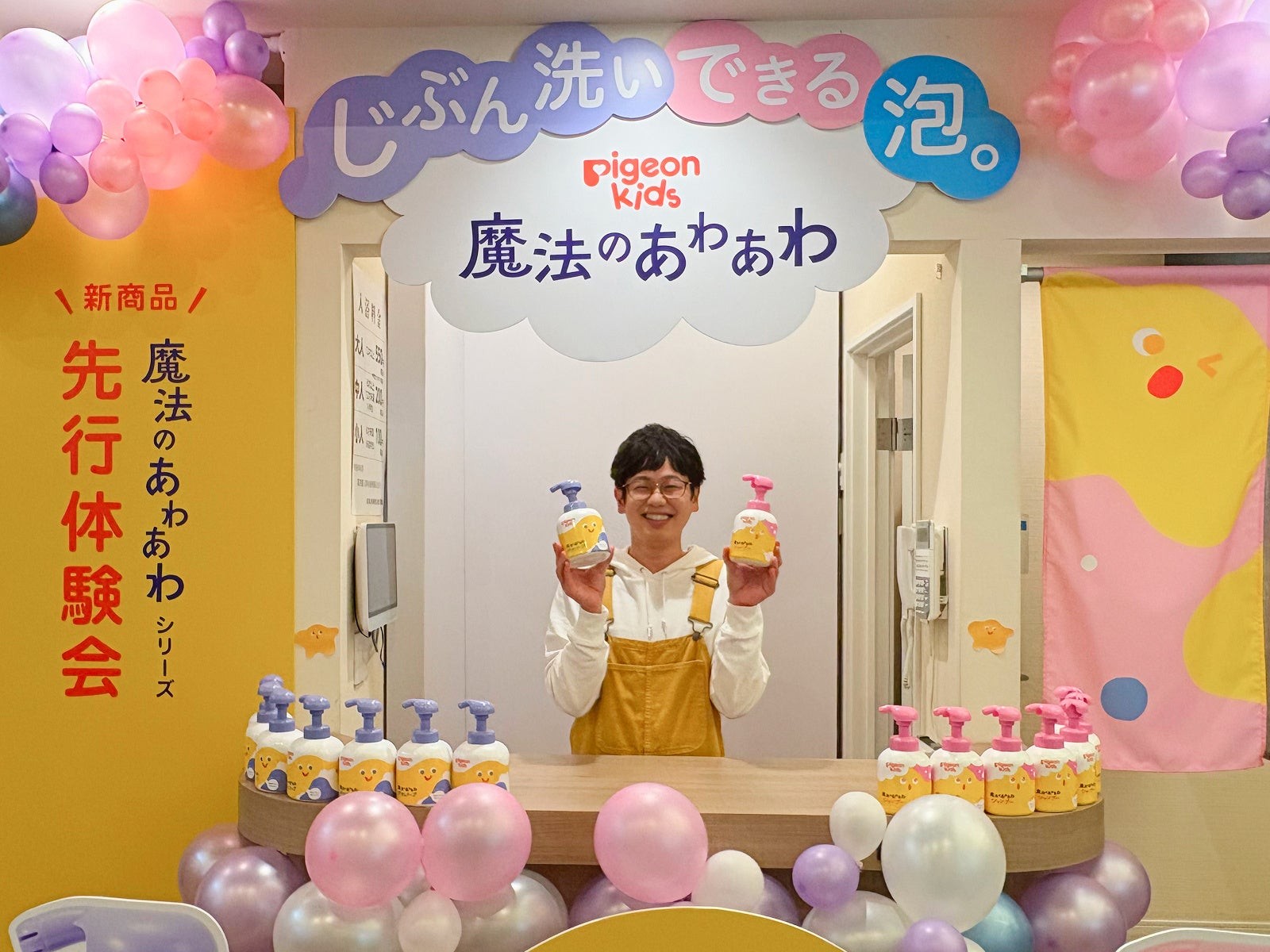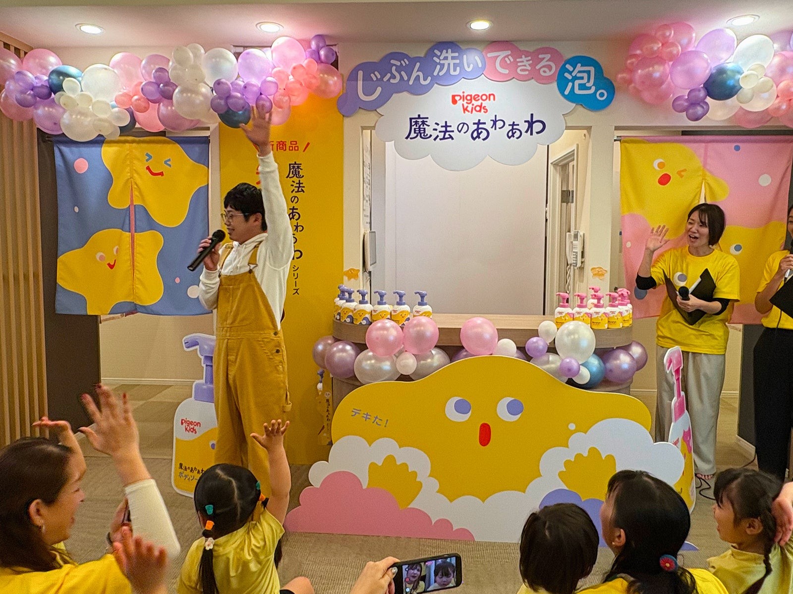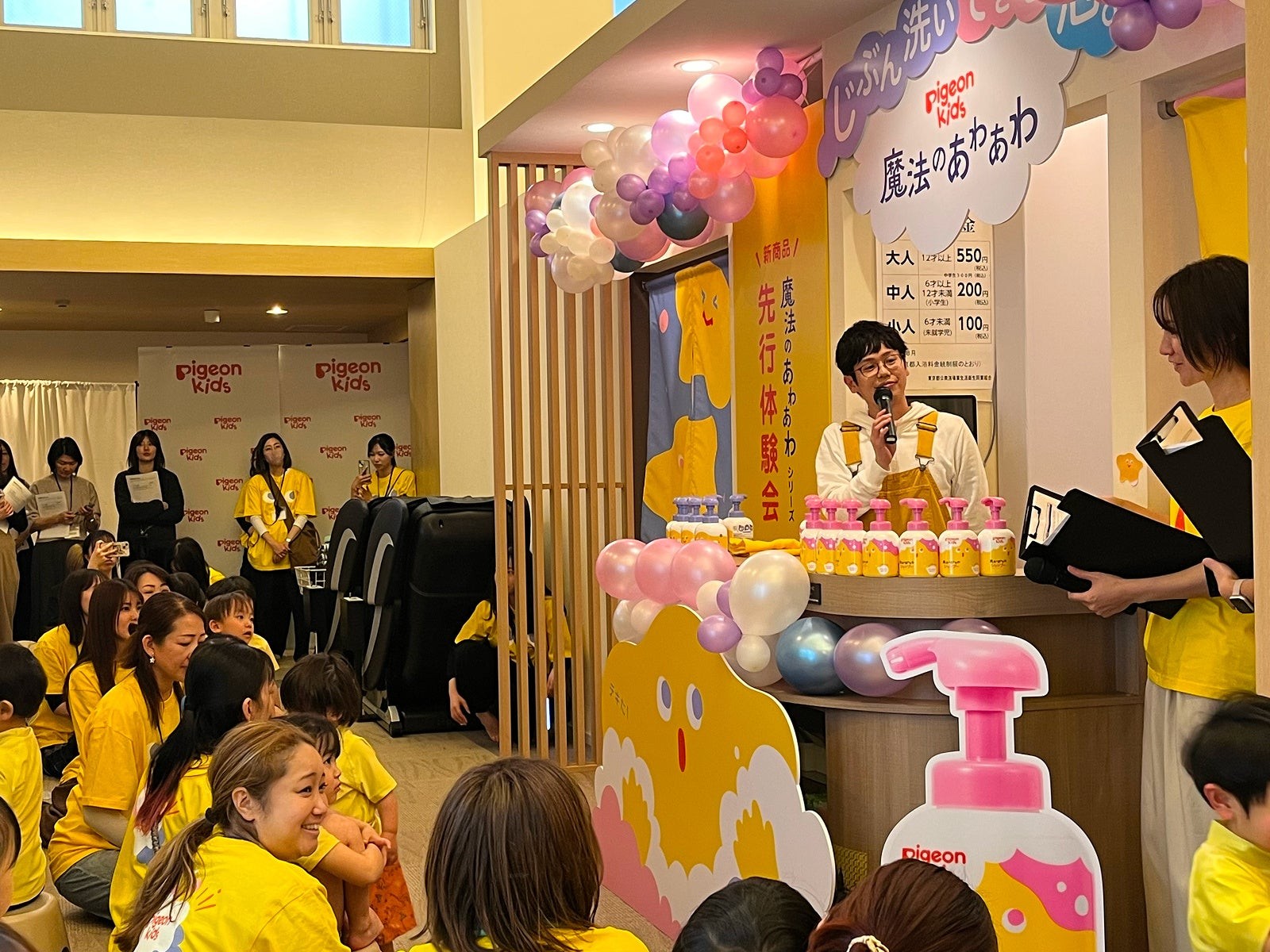 ピジョン株式会社(本社:東京都、社長:矢野 亮)は、新ブランド「ピジョンキッズ」の第一弾商品として、「魔法のあわあわボディソープ」および「魔法のあわあわシャンプー」を、2026年2月9日(月)より全国のベビー用品専門店・ドラッグストア、当社公式オンラインショップにて発売します。発売を記念し、お風呂の日(2月6日)を目前に、銭湯を貸し切った新商品先行体験会を2月5日(木)に開催いたしました。体験会には一般の親子27組が参加。大人気子育てインフルエンサーの木下ゆーきさんも特別ゲストとして登場し、子どもたちは“じぶん洗い”に挑戦しました。