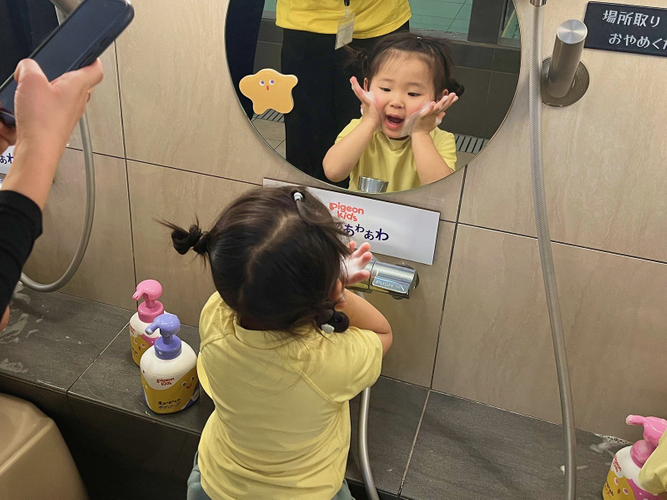 ピジョンキッズの公式キャラクター「デキスターズ」で彩られた銭湯で、子どもたちはあたたかく見守られ、声援を受けながら、じぶん洗いに挑戦しました。泡の色が白く変わる様子に子どもたちが夢中になり、親子それぞれが、小さな自立の一歩を実感。ブランドコンセプトである、ちりばめられた「あそび」から「やってみたい!」気持ちを引き出し、楽しく「できた!」を親子で迎える体験会となりました。